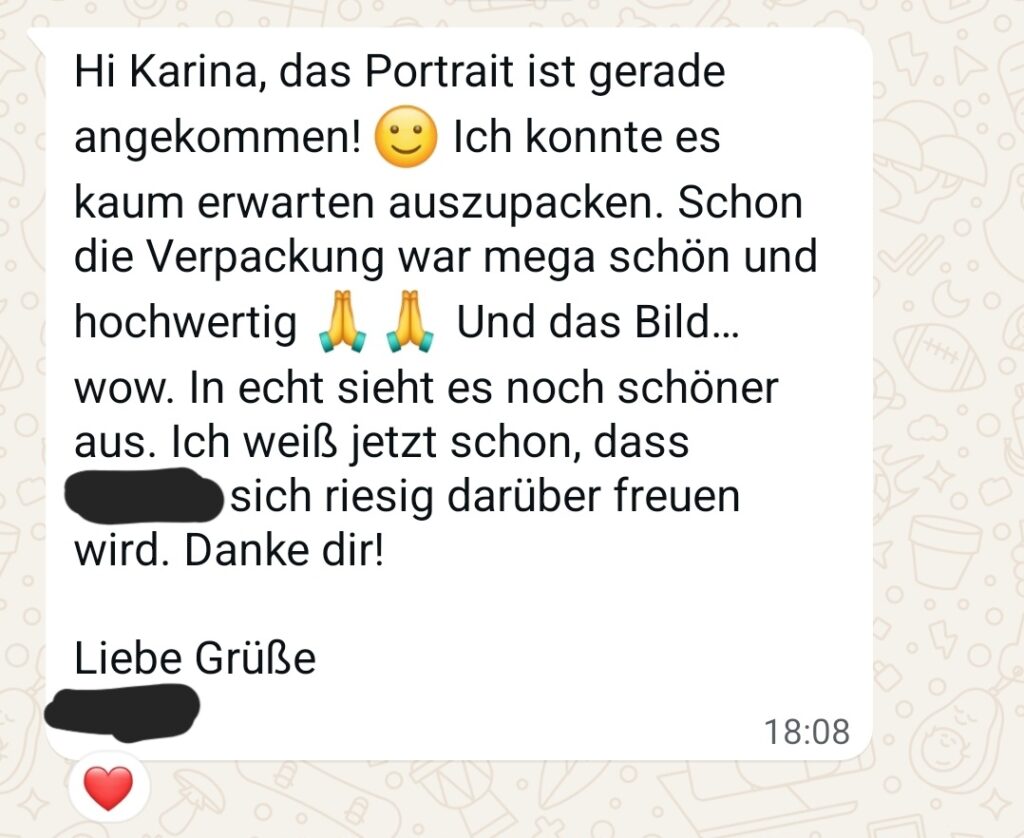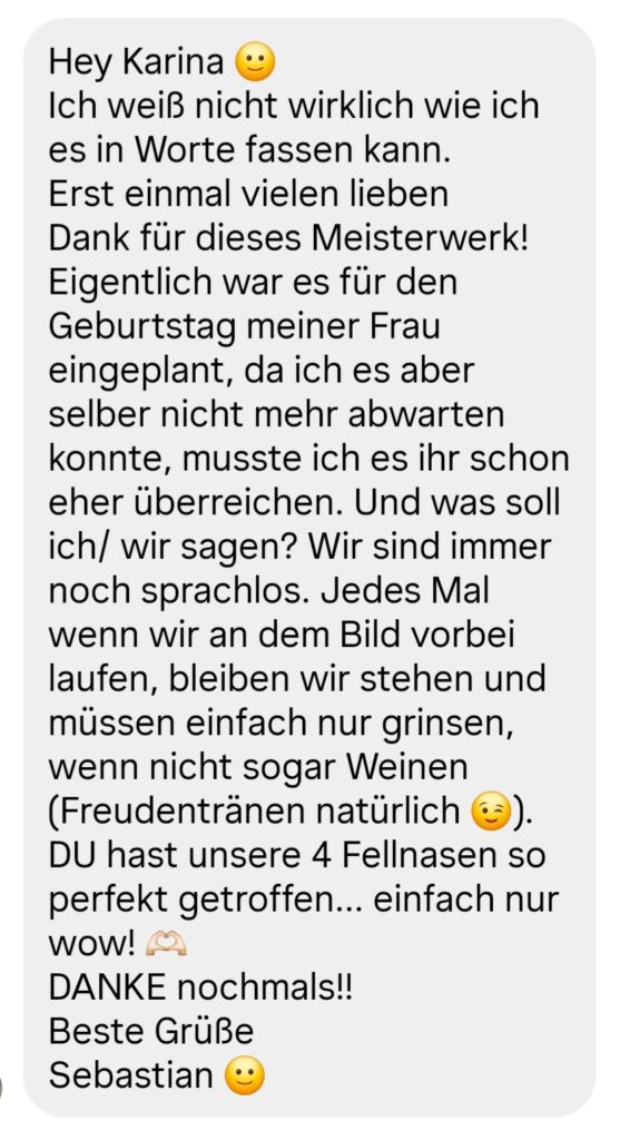 Ein einzigartiges Kunstwerk von deinem Liebling, das eure besonderen Momente einfängt und bewahrt.